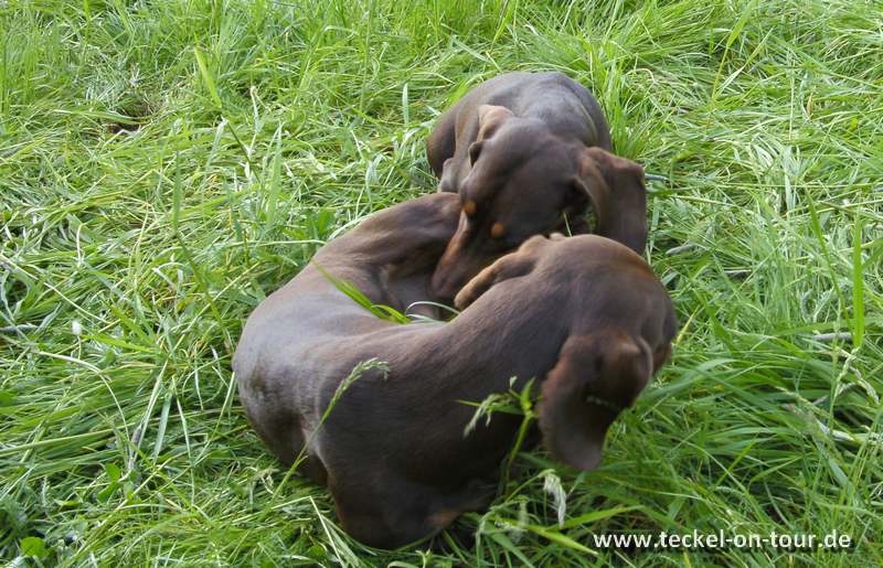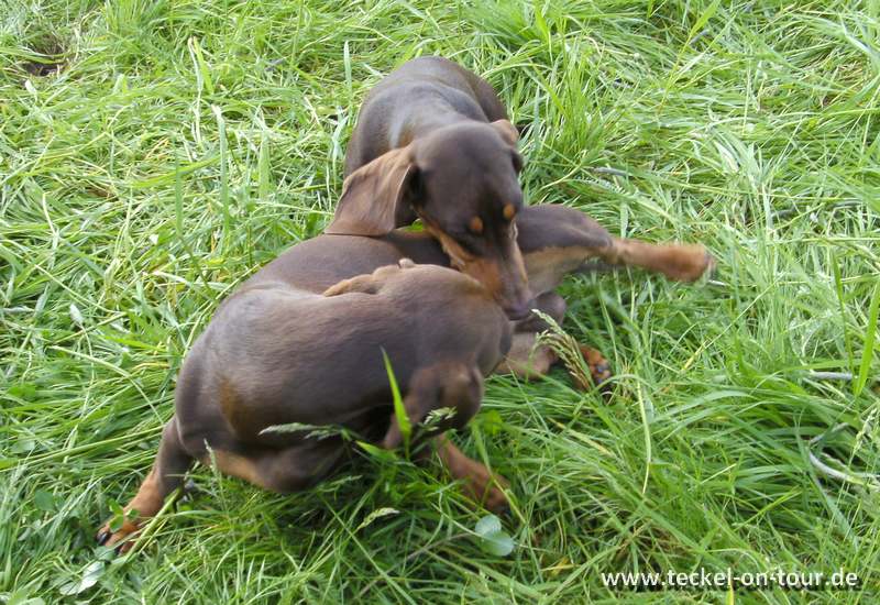 Und mit einem geringschätzigen Blick auf Antjes Futterbeutel und den Clicker, fügte er noch hinzu, daß sie mal gut aufpassen solle: Schließlich wisse ja jeder, wie stur und praktisch unerziehbar Dackel sind, und daß wir sicher schon die Chefs bei Antje wären, und keinen Meter hören würden, und das sie bei uns hart durchgreifen müsse, und mit ihrer blöden Wattebauschwerferei sicher nicht weit kommen würde bei uns.