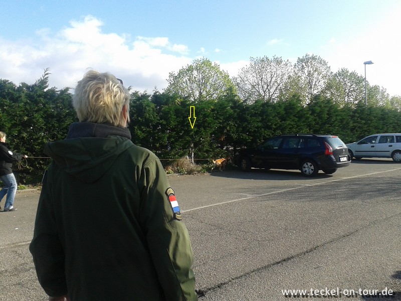 Aber auch ganz simpel der herrschende Straßenverkehr in einem urbanen Gelände kann einen Trail durchaus verkomplizieren. Im nachfolgenden Video war Götz schon fast bei seinem "Misper" (Versteckperson), als wir ihn wegen eines (!) herankommenden Autos stoppen mussten. Der Stop selbst hat ihn schon sichtlich irritiert, aber das Auto scheint auch den Geruch des Mispers ein Stück weit wieder in die Richtung aus der wir kamen, mitgenommen zu haben, denn Götz läuft plötzlich zunächst einmal wieder zurück...