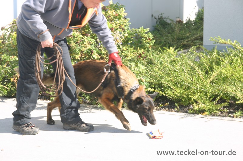 Wir analysieren dann mit dem Hundeführer zusammen, woran es gelegen hat, und arbeiten mit Hilfe von Motivationstrails (sog. "Firetrails") mit dem Hund an dem Problem, wie z.B. der Ablenkung.
