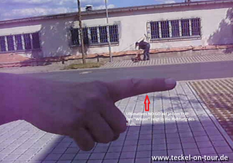 Für uns persönlich, das wirklich ultimative No-Go! auf jedem Trail: Der "Wisser" zeigt (!!) in die Richtung des Trailverlaufes, obwohl und vermutlich weil, Hund und Hundeführer "falsch" sind. Sorry, aber so etwas geht gar nicht. Genauso wie das oft zu beobachtende stehenbleiben vom Wissers / von der Entourage an einer Kreuzung, wenn Hund und Hundeführer "falsch" laufen, oder das auch oft gesehene überholen des Mantrail-Teams durch die Entourage (besonders, wenn man angeblich "double-blind" läuft).