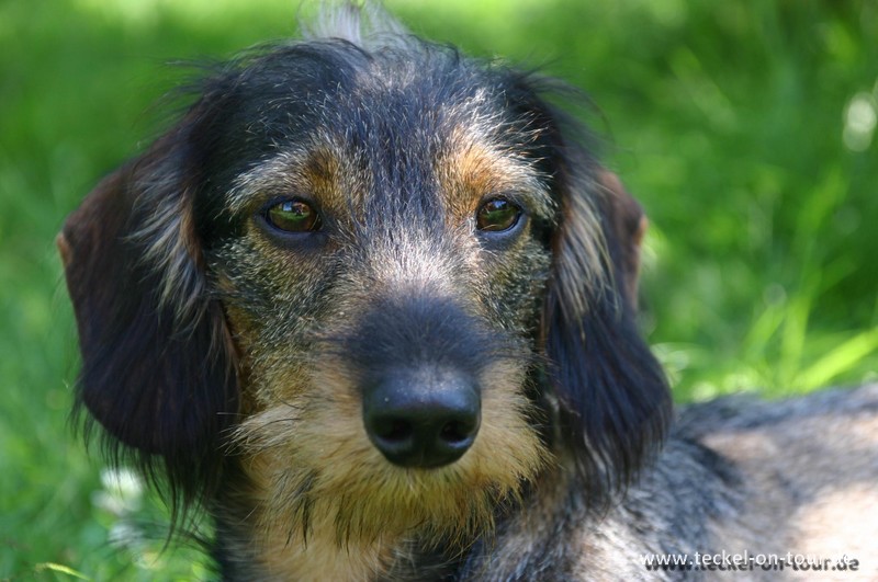 Dieses Wort heißt: Götz, und es ist mein absolut liebenswerter, wenn auch manchmal leicht durchgeknaller, saufarbener Rauhaardackel!
