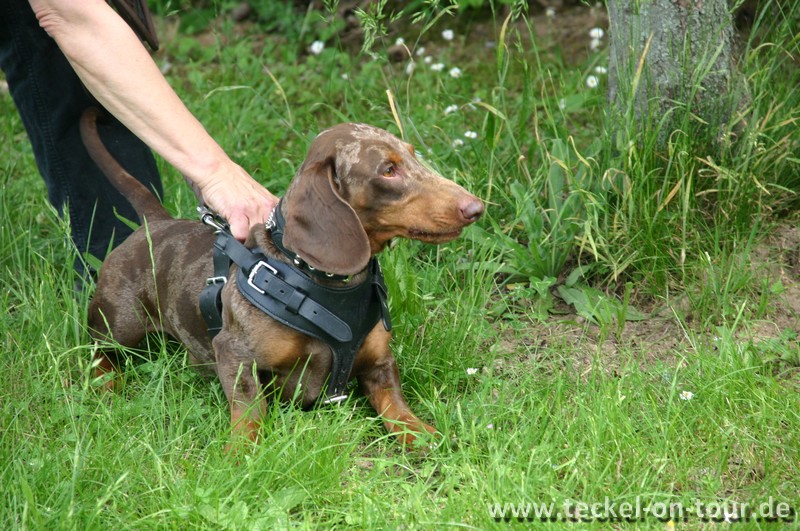 Niels (Geburtsname Kittners Harun), das jüngste Mitglied unserer Dackel-WG, ist ebenfalls ein begeisterter und überaus passionierter Mantrailer. Auf ihren Trails waren er und sein ehemaliges Frauchen Iris oft so schnell unterwegs, daß sie in der Regel die komplette Entourage einfach abhängten ...
